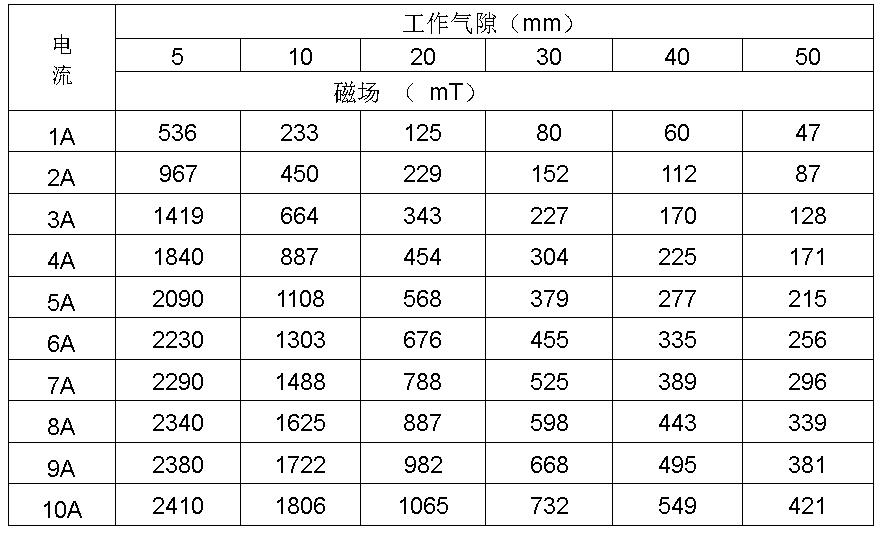 最大磁场 :工作气隙5mm时,H≥2T