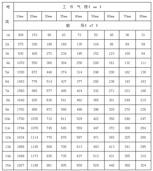 3.6 剩 磁: ≤12mT 气隙10mm时