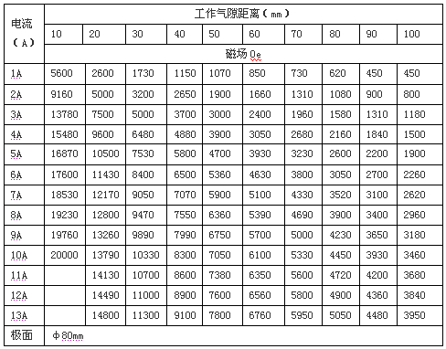 2.3 磁场强度: H≥0.5T,工作气隙80mm时
