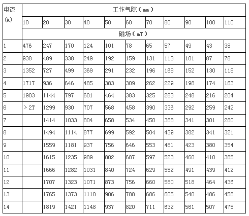 3.3 磁场强度:H≥0.4T,工作气隙100mm时